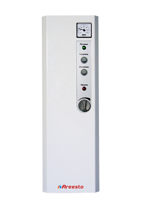 Электрический котел Areesta эконом оснащен двухступенчатой системой защиты, которая предохраняет устройство от перегрева, итальянским капиллярным термостатом, плавно регулирующим температуру теплоносителя системы в диапазоне 0 – 90°С, аналоговым термометром, световыми индикаторами для визуального контроля работы, а также выводом для подключения циркуляционного насоса. Модельный ряд состоит из электрических котлов мощностью от 3 до 12 кВт, имеющими три ступени нагрева. Подключение оборудования осуществляется в однофазные или трехфазные сети напряжением 220 В или 380 В соответственно. Детали корпуса выполнены из высококачественной стали украинского производства и подвергнуты антикоррозионной обработке. В дальнейшем на них нанесена порошковая краска для создания защитного слоя и придания красивого внешнего вида. Для производства теплообменника применяется высококачественная толстостенная стальная труба. Для продления срока эксплуатации каждый теплообменник электрического котла проходит антикоррозионную обработку и гидравлические испытания при давлении 8 бар.