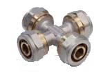Крестовина металлопластиковая (фитинг), латунная, для монтажа металлопластиковых систем водоснабжения и отопления.