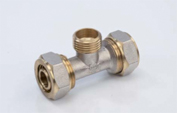 Тройник металлопластиковый с наружной резьбой (фитинг), латунный, для монтажа металлопластиковых систем водоснабжения и отопления.